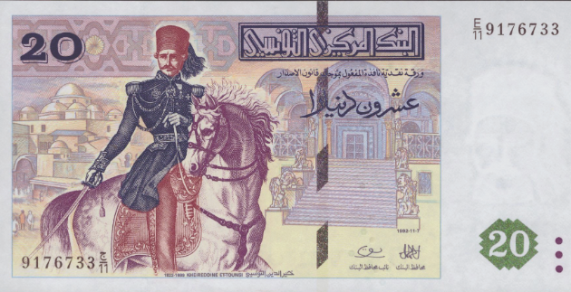 Много лет назад мне привезли из Туниса банкноту 20 динаров с портретом красивого всадника в турецкой феске на голове …