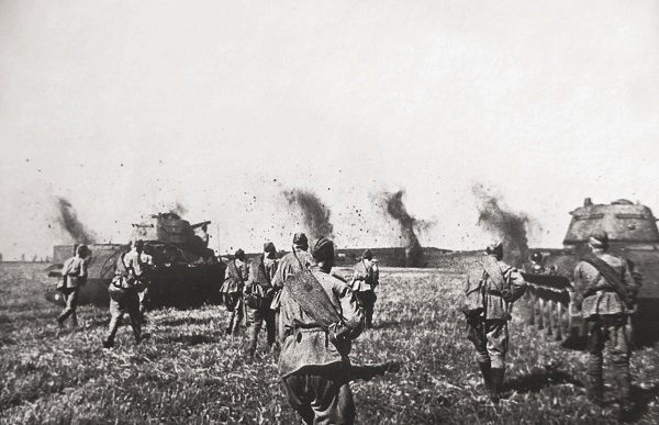 – (…) И вот бои начались. Немцы не жалели техники, пёрли нагло, поэтому оставили много наших подбитых танков. Порой нельзя было проехать в нужную сторону, везде дымились танки – и наши, и немецкие. Уже после двух дней боёв, на высоте около километра, из-за поднявшейся пыли ничего в небе не было видно. Самолёты бомбили вслепую. Стоял такой грохот от разрывов и гудения танков и пушек, что разговаривать было невозможно.